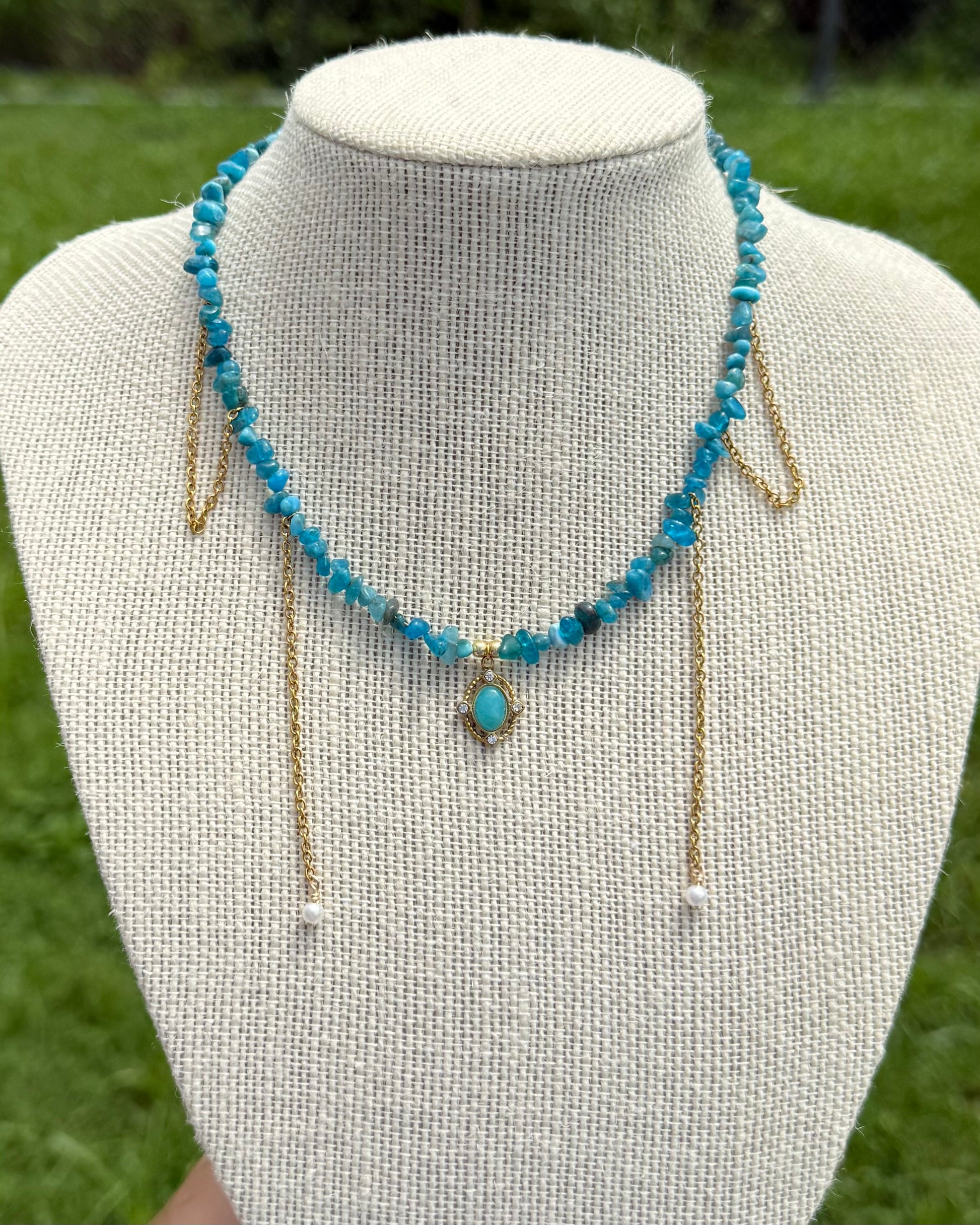 A delicate pairing of fine gold-toned chains and natural gemstones. Light, minimal, and effortlessly refined — designed for quiet elegance in every detail.
